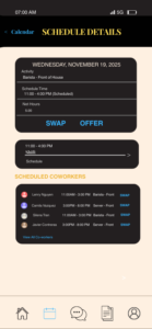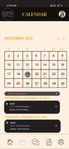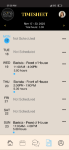 This project was inspired by one of our group mate, who has the worst experience in her part-time job at a restaurant/drink called ” Pure Tea Bar” located in San Jose. She stated: “it is a great experience at the job, but due to how inefficiency of the way they conducting the schedule for the staffs, it did make the experience getting worst”. Understand how frustrated she is, many people in our group had created an scheduling app for her store. This is also a early prototype for our class that we made on Canva.