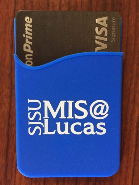 MIS students are busy. Who has time to dig a card out of a pocket, purse or backpack? Your phone’s in your hand all day long anyway–might as well keep your cards on the back where you can get at them fast. This distinctive non-slip wallet keeps those cards secure but handy, and makes a statement as well! Pick a card, any card. It’s like magic…at your fingertips.